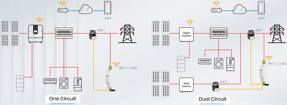 สถาปัตยกรรมนี้เหมาะอย่างยิ่งสำหรับอาคารที่พักอาศัยหลายชั้น สภาพแวดล้อมการติดตั้งที่ซับซ้อน และการกำหนดค่ามิเตอร์เป็นอินเวอร์เตอร์ระยะไกล ซึ่งการเชื่อมต่อไร้สายแบบทั่วไปไม่น่าเชื่อถือ