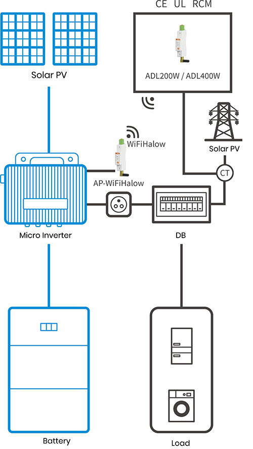 มิเตอร์เฟสเดียว ADL200W ได้รับการปรับให้เหมาะกับระบบพลังงานแสงอาทิตย์บนระเบียง 800W ของเยอรมนีและ 600W ของฝรั่งเศส โดยให้: