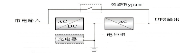 UPS แบบออนไลน์จ่ายไฟ AC ให้กับโหลดผ่านวงจรอินเวอร์เตอร์โดยไม่คำนึงถึงสถานะแรงดันไฟฟ้าของกริด ช่วยให้อินเวอร์เตอร์ทำงานได้อยู่เสมอ ในระหว่างที่ไฟฟ้าดับ เครื่องจะแปลงพลังงานแบตเตอรี่ที่เก็บไว้เป็นไฟ AC สำหรับโหลดทันที ส่งผลให้การถ่ายโอนไม่มีการหยุดชะงัก