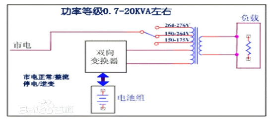 ในระหว่างการทำงานของระบบสาธารณูปโภคตามปกติ ระบบจะจ่ายพลังงานไฟฟ้าที่ได้รับการปรับปรุงให้กับโหลดผ่านการควบคุมหม้อแปลงไฟฟ้าแบบเปลี่ยนก๊อกน้ำอัจฉริยะ ในขณะที่อินเวอร์เตอร์ทำงานในโหมดย้อนกลับเพื่อชาร์จแบตเตอรี่ ในระหว่างที่ไฟดับ โหลดจะได้รับพลังงานจากแบตเตอรี่ทั้งหมดผ่านอินเวอร์เตอร์ ตัวแปลงสองทิศทางนี้ทำหน้าที่เป็นทั้งอินเวอร์เตอร์และเครื่องชาร์จ