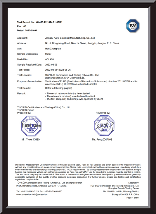 Jiangsu Acrel Electric Manufacturing Co., Ltd. ซึ่งเป็นโรงงานผลิตของบริษัท ปฏิบัติตามมาตรฐานคุณภาพและแนวทางด้านสิ่งแวดล้อมที่เข้มงวด พร้อมด้วยศูนย์ทดสอบที่ทันสมัย และความมุ่งมั่นต่อกระบวนการผลิตไร้สารตะกั่ว ทีมวิศวกรกว่า 500 คนของ Acrel นำเสนอระบบประสิทธิภาพพลังงานที่ล้ำสมัยและโซลูชั่นพลังงานอัจฉริยะ