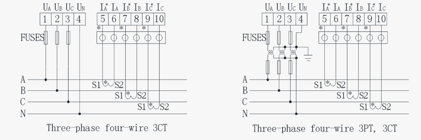 | สามเฟส | ค่าคงที่ของพัลส์: 100imp/kWh | |||