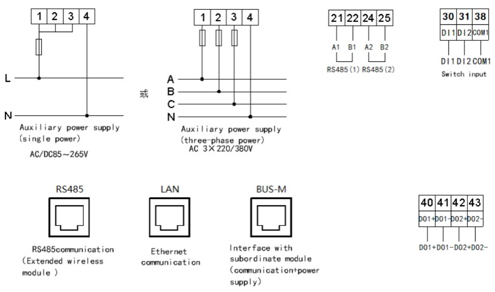Acrel ADF400L ซีรีส์ยังมีหน้าจอ LCD ที่ใช้งานง่ายพร้อมไฟพื้นหลัง ช่วยให้อ่านการวัดต่างๆ ได้ง่าย เช่น แรงดัน กระแสไฟฟ้า กำลังไฟฟ้าที่ใช้งานอยู่ กำลังไฟฟ้ารีแอกทีฟ กำลังปรากฏ ตัวประกอบกำลัง และความถี่ ความสามารถในการสื่อสารได้รับการปรับปรุงเพิ่มเติมด้วยการสื่อสารอินฟราเรด พร้อมด้วยอินเทอร์เฟซ RS485 และอีเทอร์เน็ตที่รองรับโปรโตคอล Modbus และ DL/T 645 ช่วยให้มั่นใจได้ถึงการบูรณาการอย่างราบรื่นกับระบบการจัดการพลังงานต่างๆ ด้วยความแม่นยำในการวัดสูง ฟังก์ชันการทำงานที่ครอบคลุม และตัวเลือกการติดตั้งที่ยืดหยุ่น เครื่องวัดพลังงานหลายวงจร ADF400L จึงเป็นตัวเลือกที่เหมาะสำหรับการตรวจสอบและจัดการพลังงานที่มีประสิทธิภาพและแม่นยำ