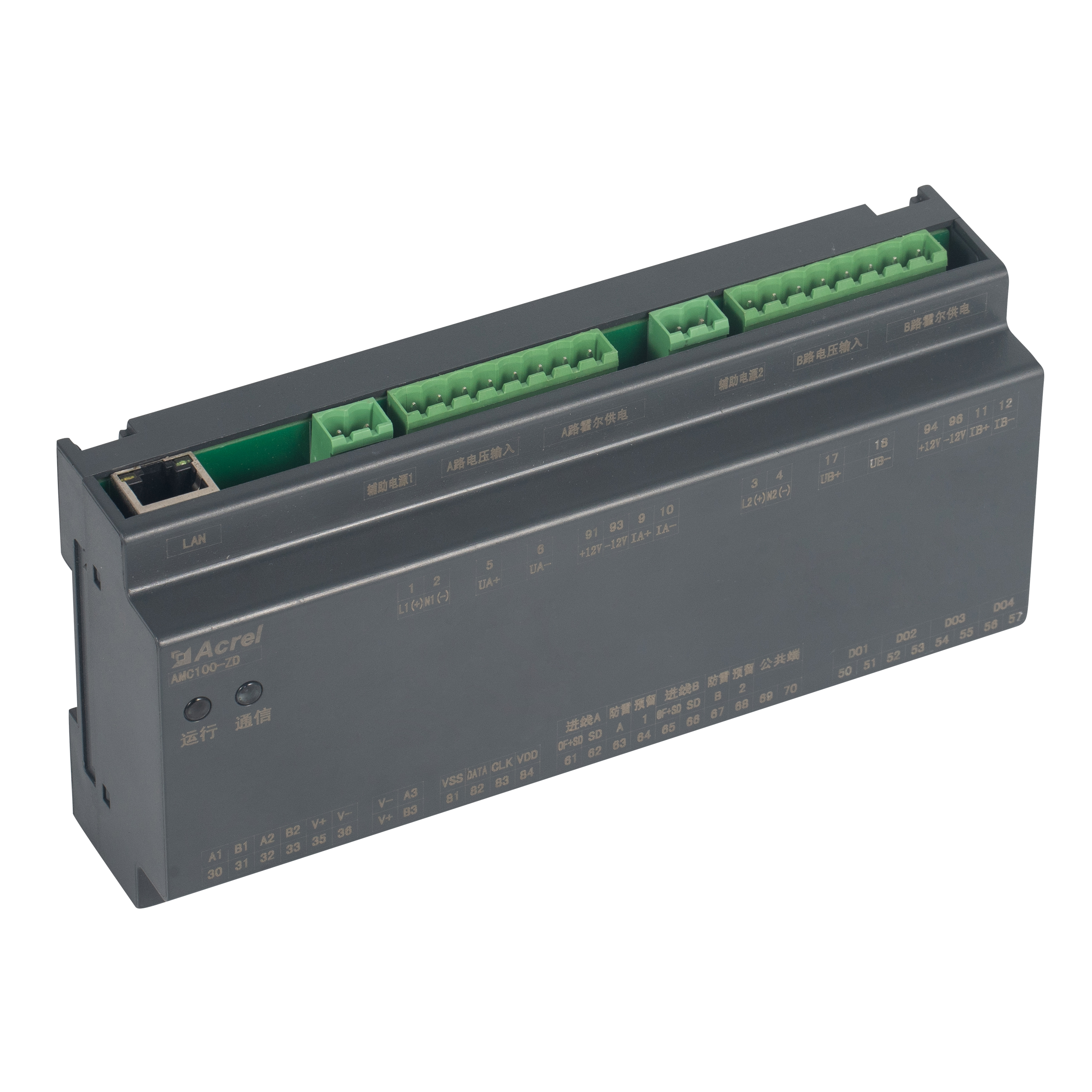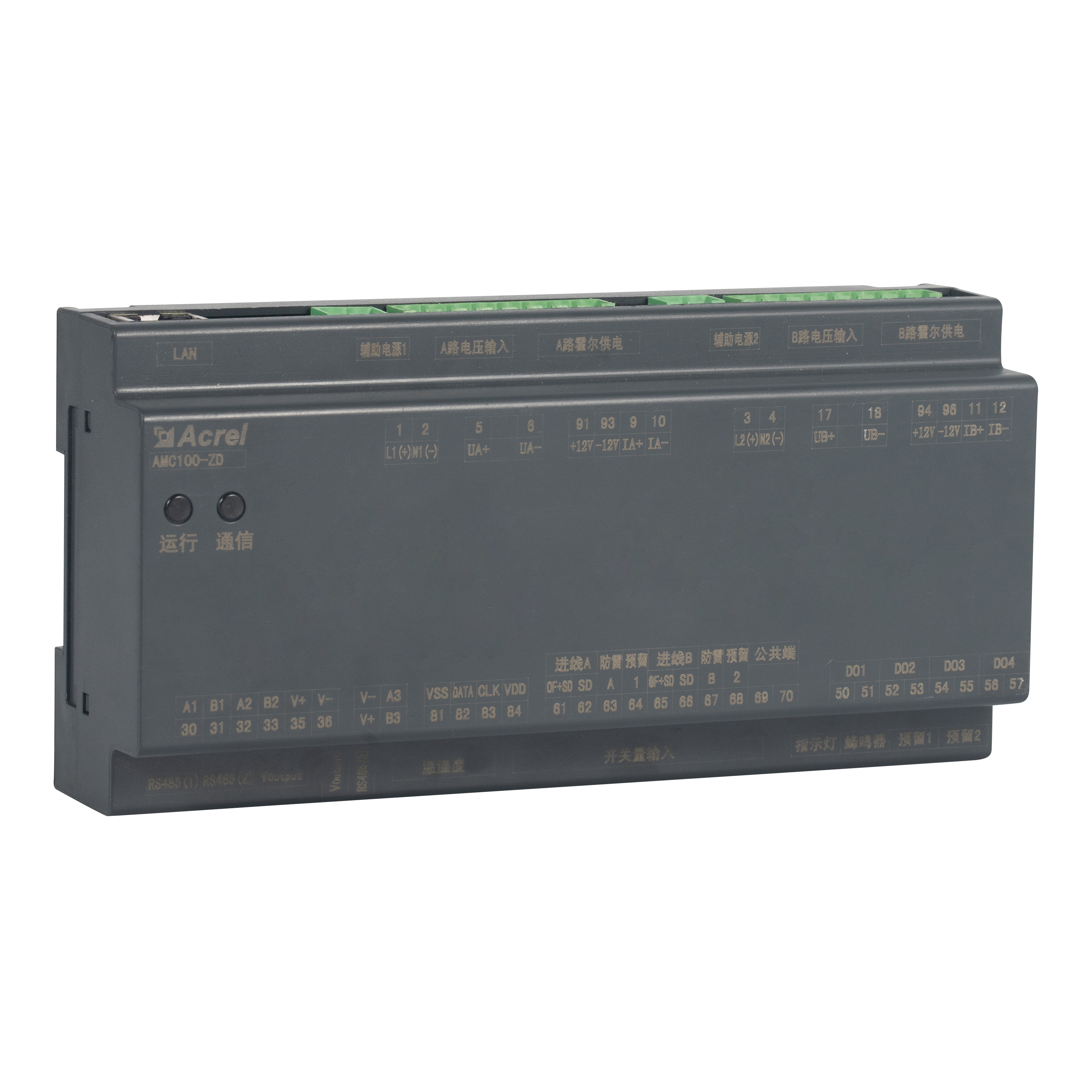AMC100-ZD เป็นยูนิตตรวจสอบการกระจายพลังงาน DC แบบราง DIN ของ Acrel ที่ออกแบบมาเพื่อชั้นวางเซิร์ฟเวอร์ศูนย์ข้อมูล ติดตามพารามิเตอร์ทางไฟฟ้าเต็มรูปแบบของฟีดสามเฟสคู่ AB, วงจรขาออก 192 วงจร, จุดสถานะ DI / 4 DO 8 จุด, ช่องสัญญาณรั่ว 2 ช่อง, เซ็นเซอร์อุณหภูมิ-ความชื้น 1 ตัว และฮาร์โมนิค 63 ตัว พอร์ต RS485 Modbus-RTU สามพอร์ตช่วยให้สามารถรวม BMS/DCIM ได้อย่างราบรื่น โครงสร้างขนาดกะทัดรัด 180 มม. ความแม่นยำ ±0.5 % เกณฑ์การแจ้งเตือนต่อช่องสัญญาณและเสียงเตือนแบบทันทีช่วยลดการสิ้นเปลืองพลังงานและเวลาหยุดทำงาน ทำให้เป็นหัวใจที่ปรับขนาดได้ของบัสเวย์ DC ของศูนย์ข้อมูลสีเขียวหรือโซลูชันการตรวจสอบ PDU