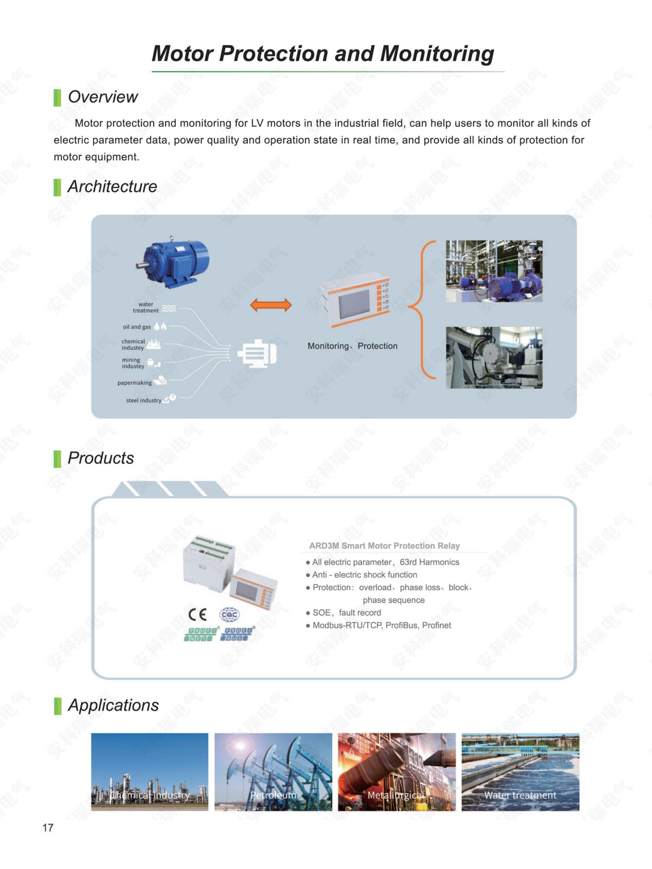 Acrel ARD3M เป็นตัวควบคุมการป้องกันมอเตอร์ที่ครอบคลุมซึ่งออกแบบมาสำหรับมอเตอร์แรงดันต่ำที่มีแรงดันไฟฟ้าสูงสุดถึง AC380V/690V มีการบันทึกเหตุการณ์ การป้องกันการรั่วไหล และ DI/DO ที่ตั้งโปรแกรมได้เพื่อการควบคุมที่ยืดหยุ่น อุปกรณ์รองรับฟังก์ชันป้องกันการสั่นเพื่อให้การทำงานมีเสถียรภาพ และมีเอาต์พุตแบบอะนาล็อกเพื่อการตรวจสอบ ด้วยกลไกการป้องกันที่แข็งแกร่งและตัวเลือกการสื่อสารที่หลากหลาย ARD3M จึงเหมาะอย่างยิ่งสำหรับการใช้งานในอุตสาหกรรมต่างๆ รับประกันการจัดการมอเตอร์ที่เชื่อถือได้และการบูรณาการระบบที่มีประสิทธิภาพ