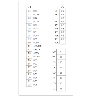 | อินพุต | การเชื่อมต่อ | เฟสเดียว 2 สาย 3 เฟส 3 สาย 3 เฟส 4 สาย | ||